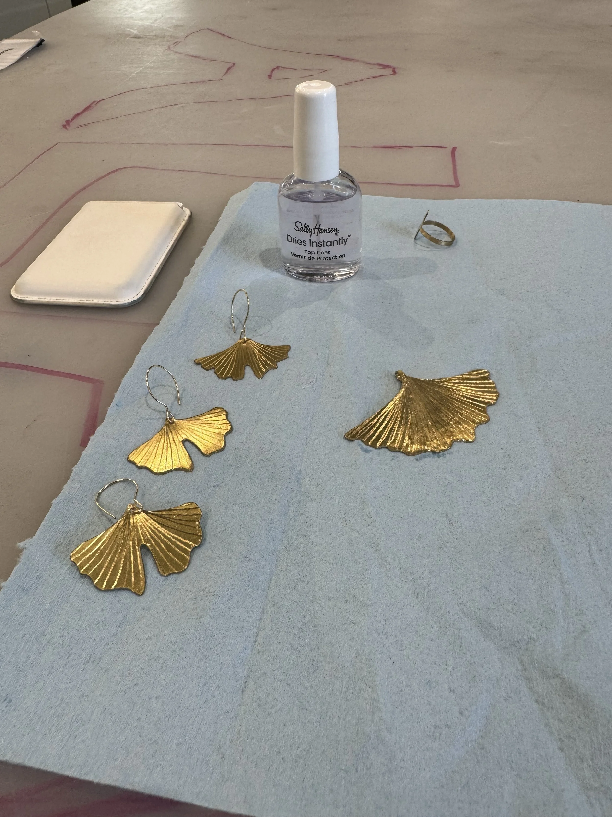 This collection features a necklace, earrings, and a ring, all crafted from brass and inspired by my favorite leaf, the ginkgo.