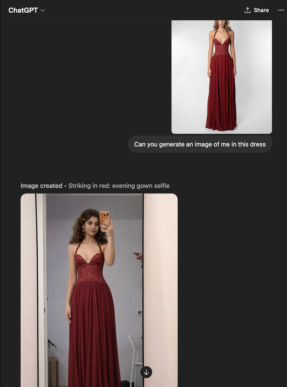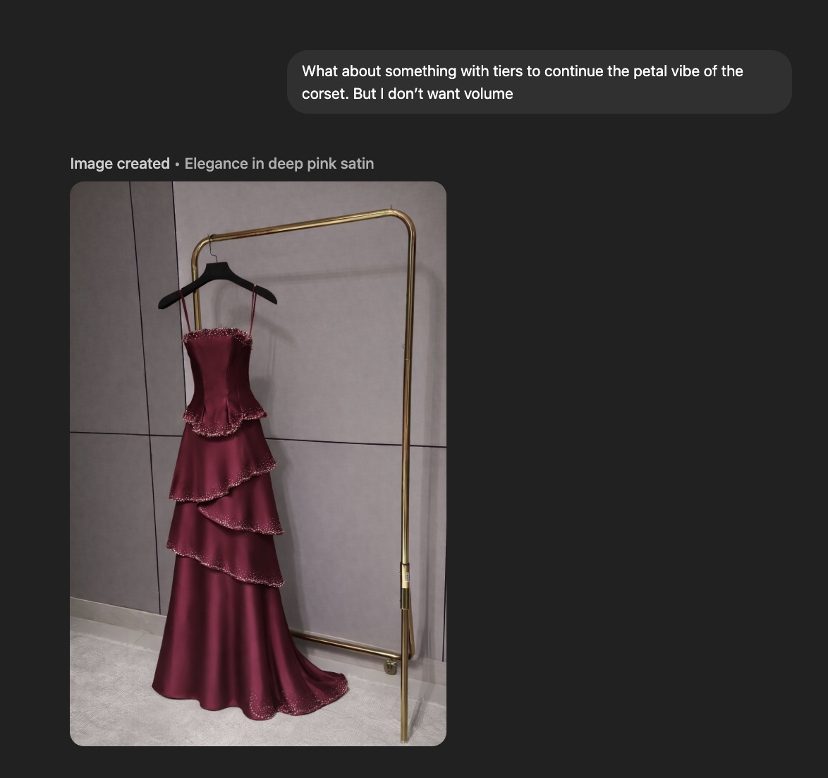 Before even working on the dress, I spent two weeks researching current trends in dress silhouettes, and using ChatGPT to bring my ideas to life to accelerate the design process